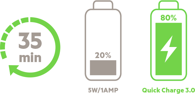 • Devices compatible with Quick Charge 3.0 take 35 minutes to go from zero to 80%*