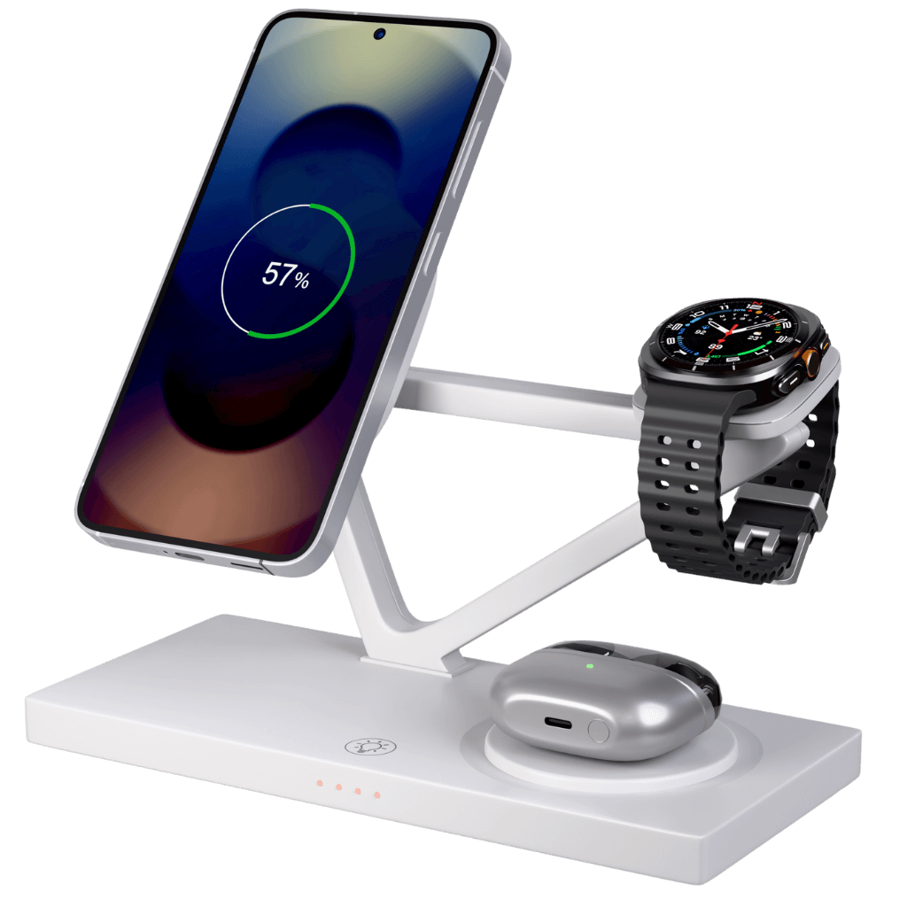 Stop juggling multiple chargers. This 3-in-1 hub powers your phone, watch, and earbuds — with just one cable.