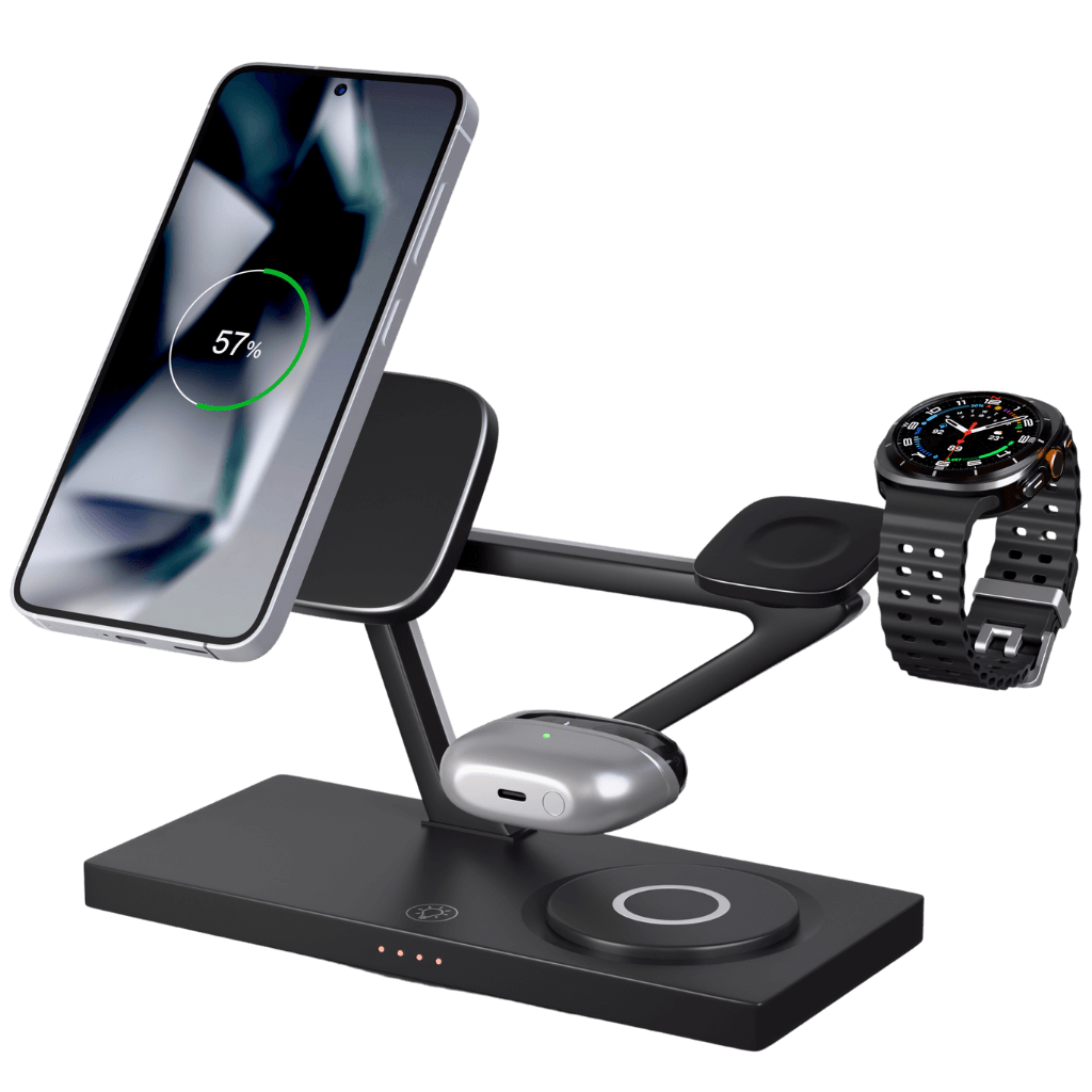 Power up your phone, watch, and buds in one sleek, MagSafe-compatible setup — perfect for your desk, nightstand, or anywhere you unwind.