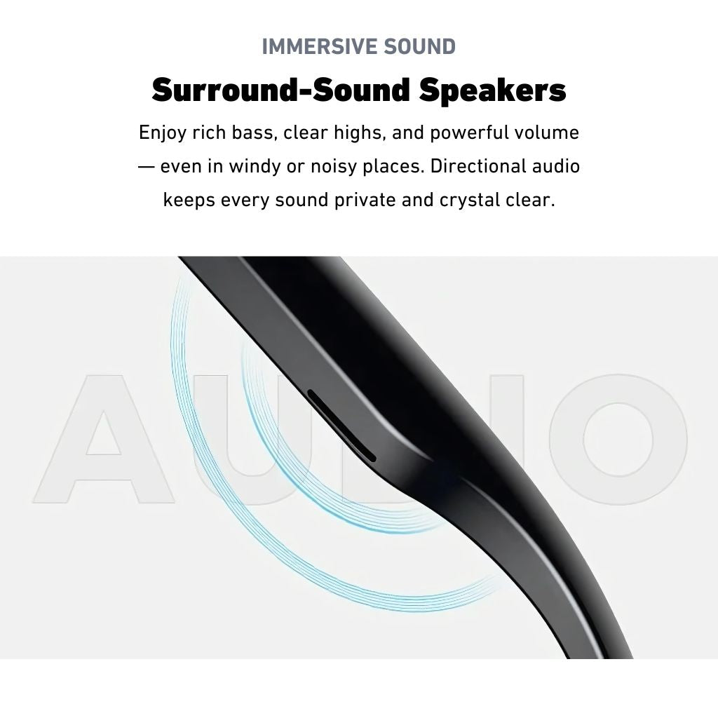 Switch seamlessly between music, calls, and your surroundings with discreet open-ear speakers. Enjoy deep bass and clear volume, even in noisy places — all while keeping your audio private and focused.