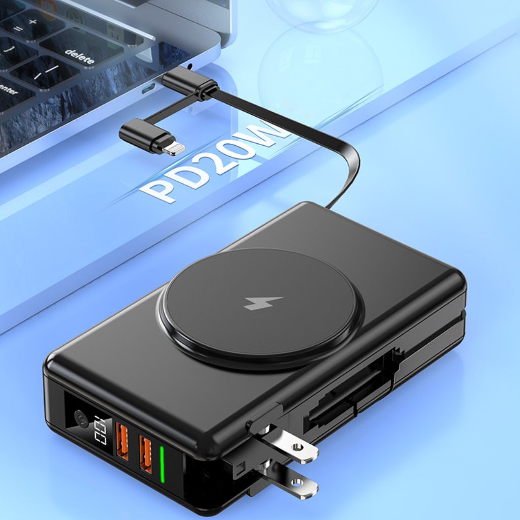 Bank's built-in lightning and USB-C cables that support fast charging. You'll